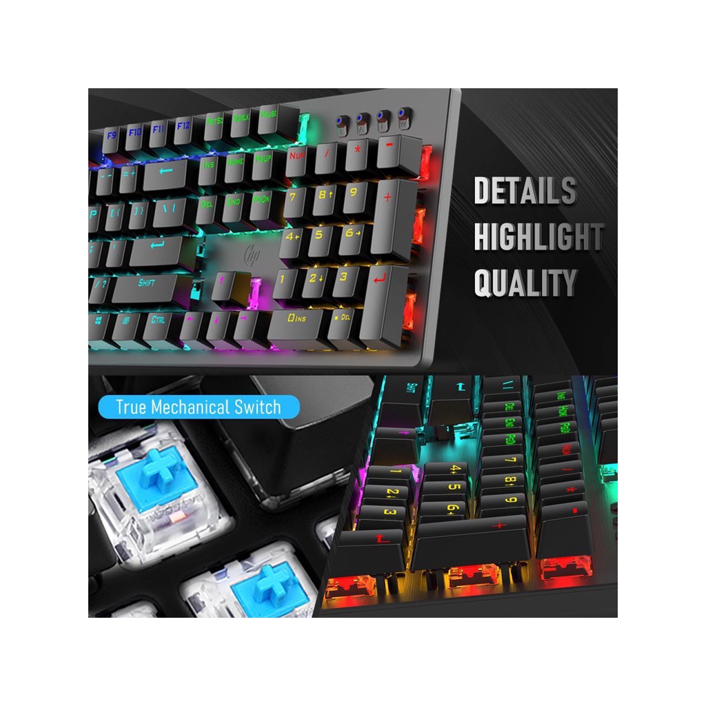 HP GK100F True Mechanical Keyboard Wired 104 Keys Anti-collision Adjustable RGB Backlight Blue Switch For PC Office