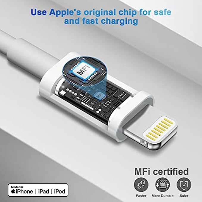 【 Safety Efficient Fast Charging 】- The Power Delivery Wall Charger for iPhone owns bulit-in multi-protection system, avoiding from over-voltage, over-charge, over-heat, etc. The smart chip including in the MFi certified lightning cable match the current required by the Apple device automatically, charge your iPhone/iPad device fast, safely and steadily.Tangle-free 6 Feet length is convenient for usage while charging and sync at home/office/travel in bed, hotel rooms, and more.