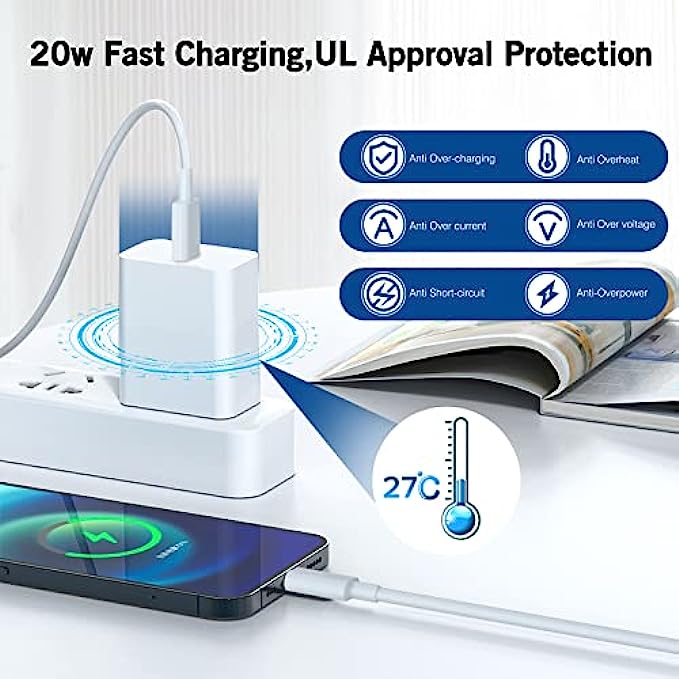 【Safe Charging】UL-certified iPhone fast Charger with Built-in protetion mechanism works intelligently to protect your iPhone/tablet/iPad/AirPods from overheating, over charging, over-current and over-voltage.FITINFUSER