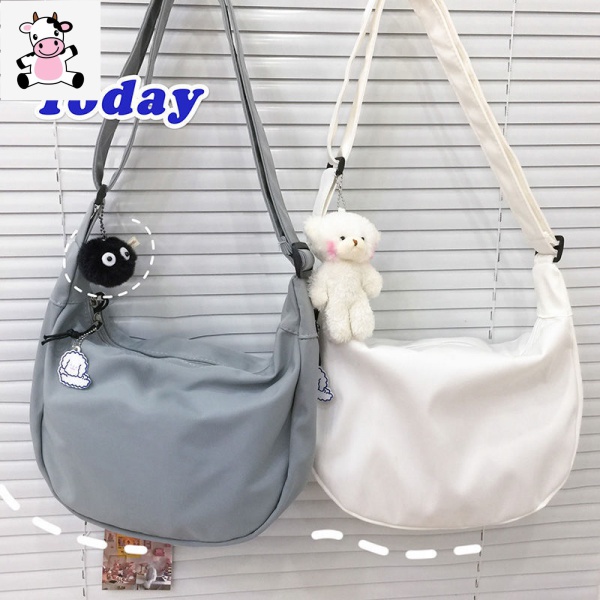 Japanese Harajuku Girl Solid Color Soft Girl Shoulder Bag Korean-StyleinsSimple Messenger Bag (Without pendants))