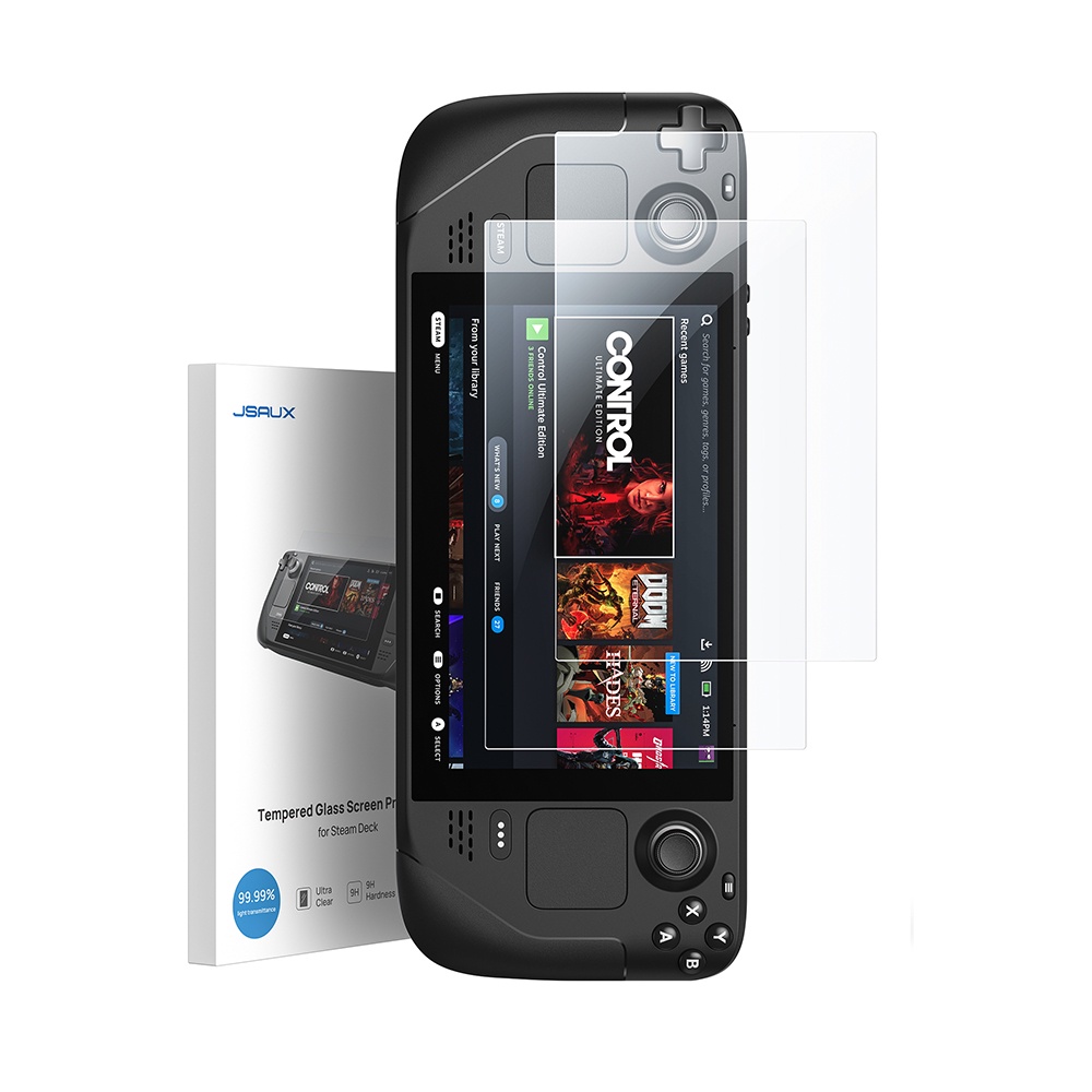JSAUX Steam Deck OLED Tempered Glass 9H Screen Protector Guiding Frame (2 Packs)