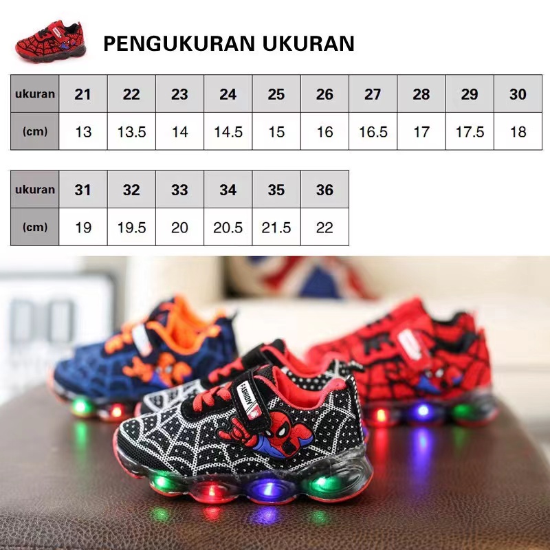 Kids Spiderman Shoes Boys Cartoon Sneakers LED Shoes Cool Superman Shoes