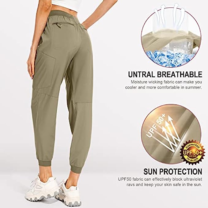 92% Polyester, 8% Spandex Zipper closure Women's Quick Dry Hiking Pants 92% Polyester, 8% Spandex; Water repellent finish dries quickly to keep dry. Hiking Pants Women: UPF sun protection fabric reduces your exposure to harmful UVA/UVB radiation Womens Cargo Pants: Side elastic waistband with belt loops for adjustability. 2 handy side,zipper pockets, 2 back pockets, the cargo workout track pant has a hidden headphone cable hole that you can listen to the music while jogging without affecting the look of your pant. Casual Long Shorts for Women: Sits at waist / loose fit / Elastic wasitband with drawstring for a adjustable fit. Stretchy ankle cuffs for a sporty look and easy wear linlon Women's Hiking lounge Cropped Joggers Pants are suitable for Spring, Summer, and Autumn. Good choice for outdoor activities like hiking, camping, hunting, fishing, cycling, gym fitness, lounge, athletic, travel, errands, exercise, workout, fitness,etc boating, rock climbing, running, jogging causal wear and even home wear.