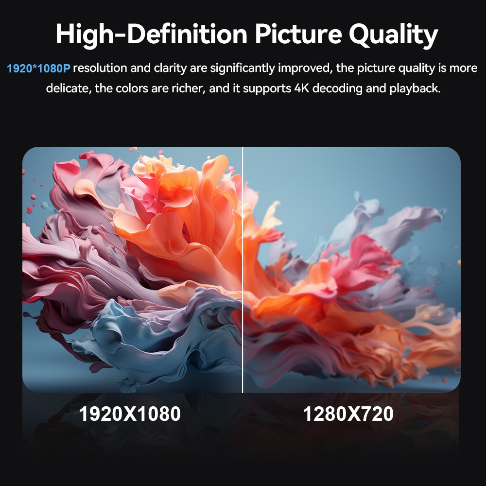 This mini projection is very clear and adjustable, which suits my needs very well. It has an attractive appearance and is easy to use. The image quality and resolution did not disappoint me. The effect is very good and can meet my daily use. It's very good.