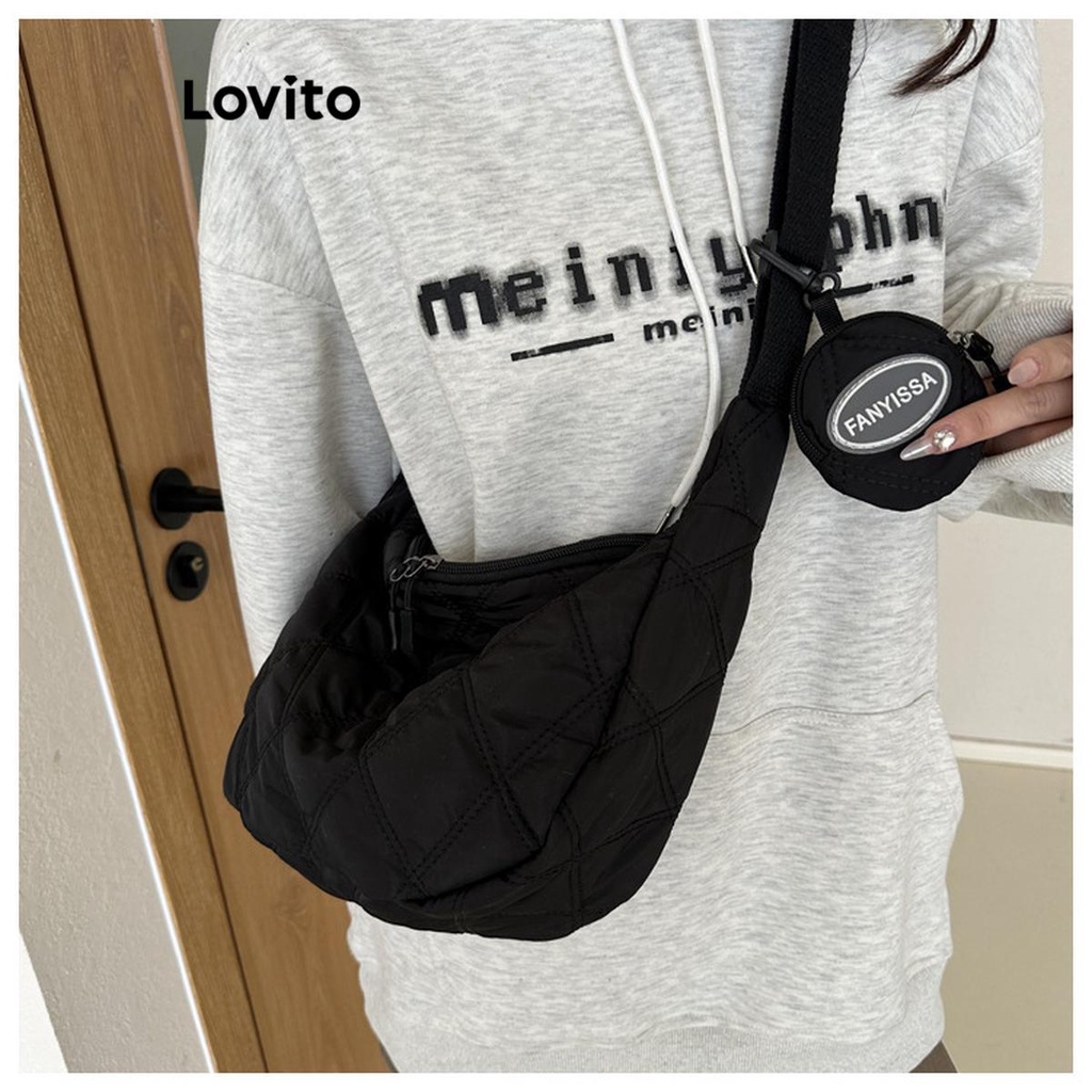 Lovito Casual Plain Basic Zipper Padded Small shoulder bag for Women LFA10009