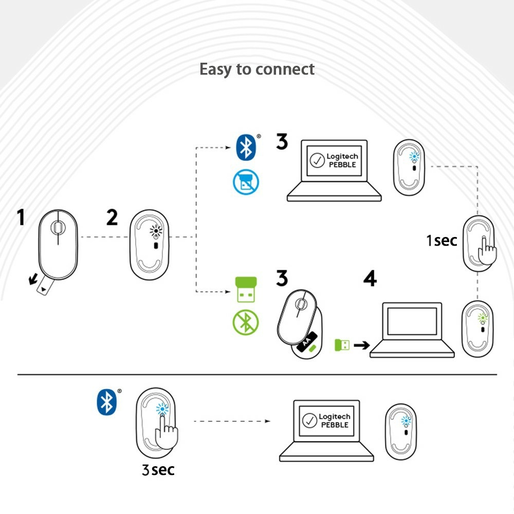 Best Feature(s):good Performance:Good Value For Money:Good Received item within a week after placing order for the pebble mouse. No brand but look similar to logic tech pebble mouse. Green colour is bright. Good material and working. Ease of setup, just plug in dongle to laptop and fast detection. Smooth roller and feel. AA size Battery not included. Lightweight and compact.