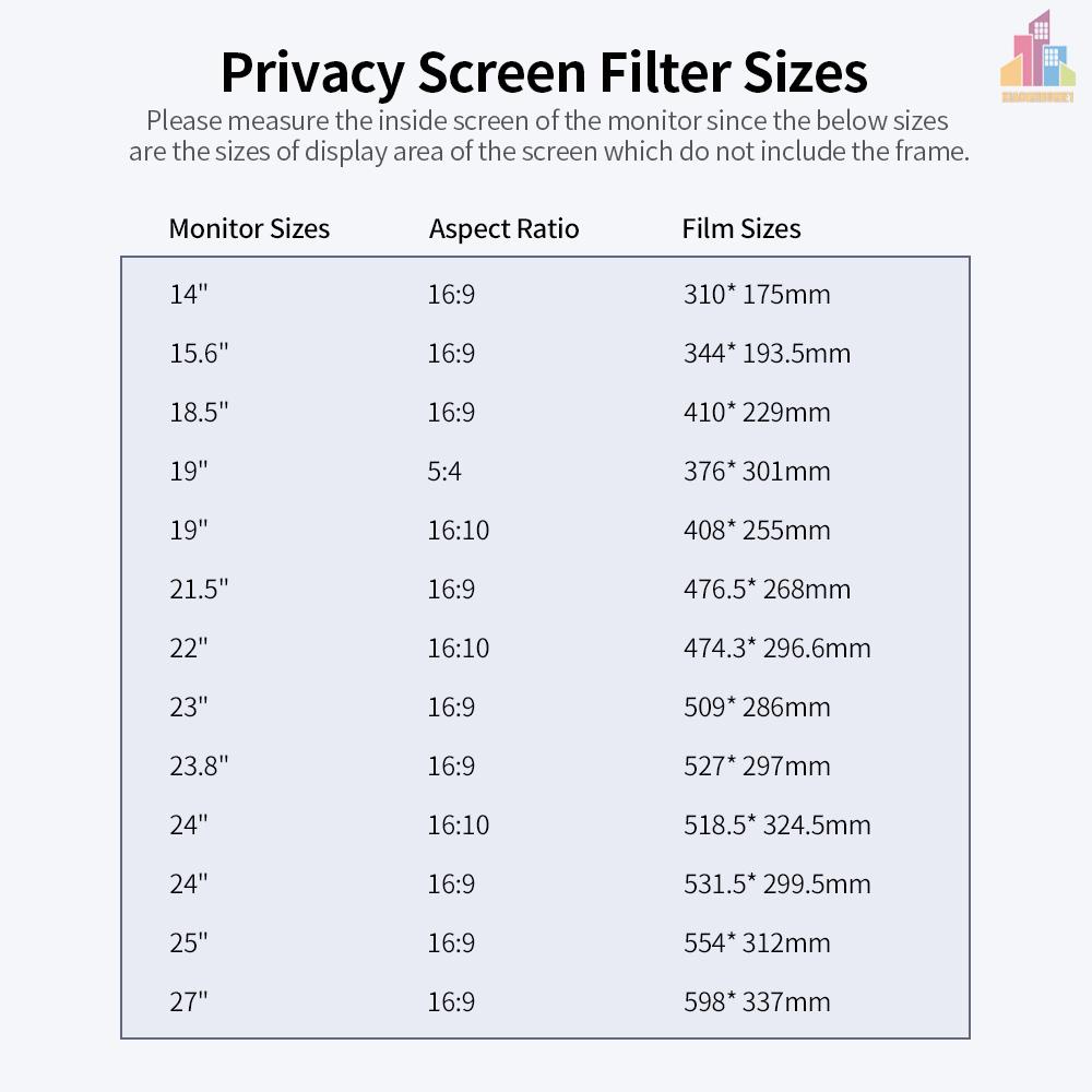 Privacy Screen Filter Reversible High-transmittance 30° Invisible Anti-UV Anti-glare Film for 27'' Monitor with 16:9 Aspect Ratio HOT1